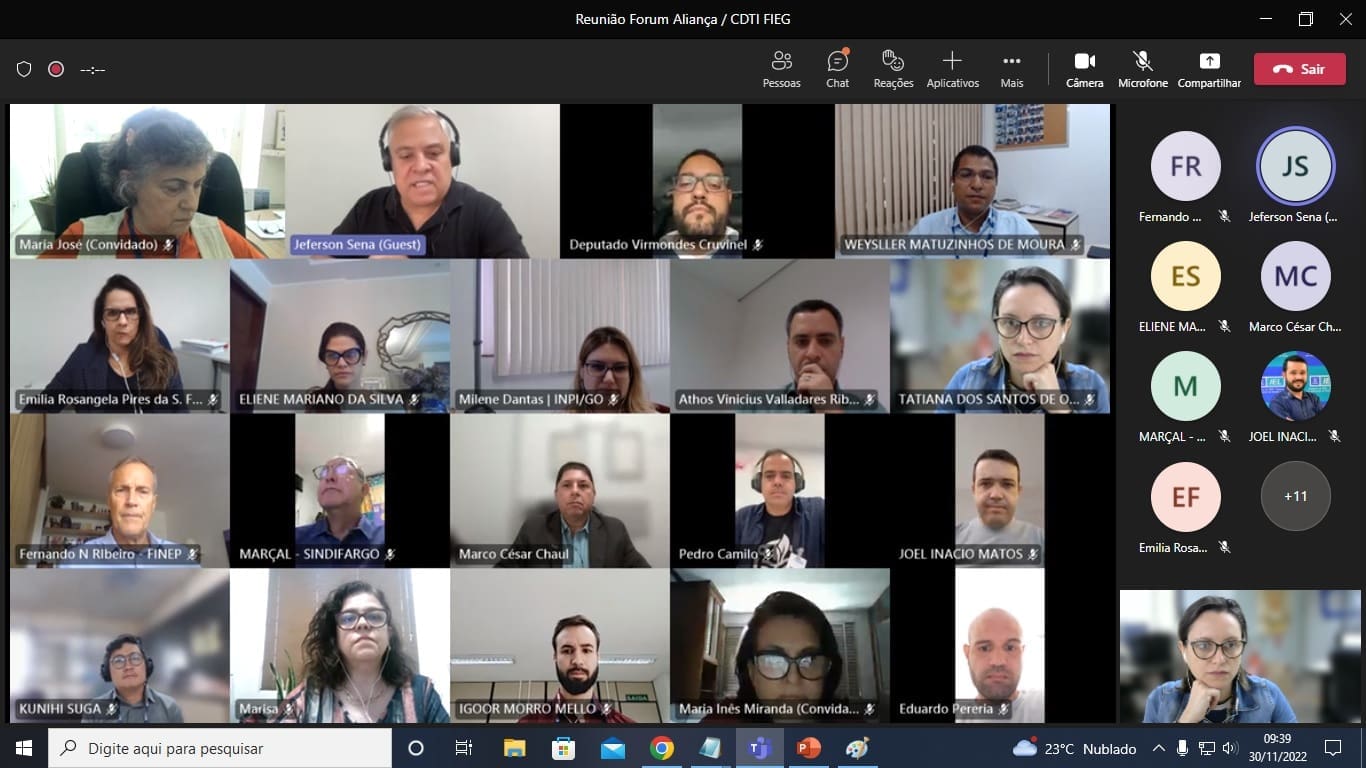 O encontro marcou também a realização da 8ª Reunião Ordinária do Fórum Aliança pela Inovação em Goiás, que deliberou sobre o planejamento estratégico do movimento para o primeiro semestre de 2023 e elegeu a nova gestão que conduzirá os trabalhos no período 2023-2025. Por aclamação, os representantes da Federação do Comércio de Bens, Serviços e Turismo de Goiás (Fecomércio-GO), Marco Chaul, e da Federação da Agricultura e Pecuária de Goiás (Faeg), Pedro Henrique Camilo, foram eleitos presidente e vice-presidente, respectivamente.