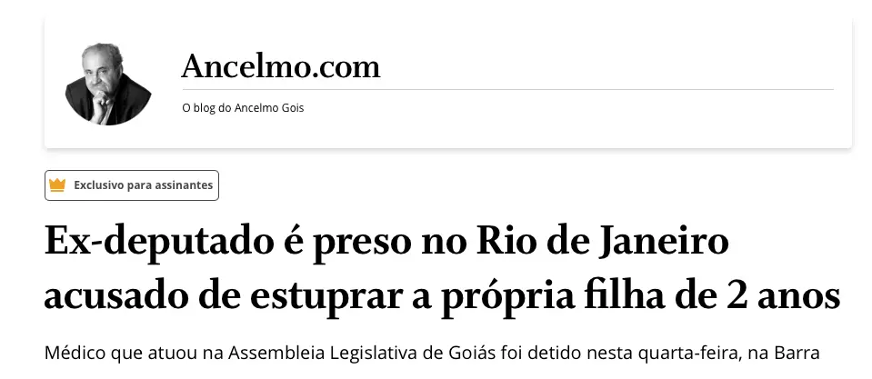 Irams Saraiva Júnior, conhecido como Iramzinho em Goiás, é acusado de estuprar uma criança de 2 anos. Ele foi capturado na Barra da Tijuca, Zona Oeste do Rio, por policiais da Delegacia da Criança e do Adolescente Vítima (Dcav)