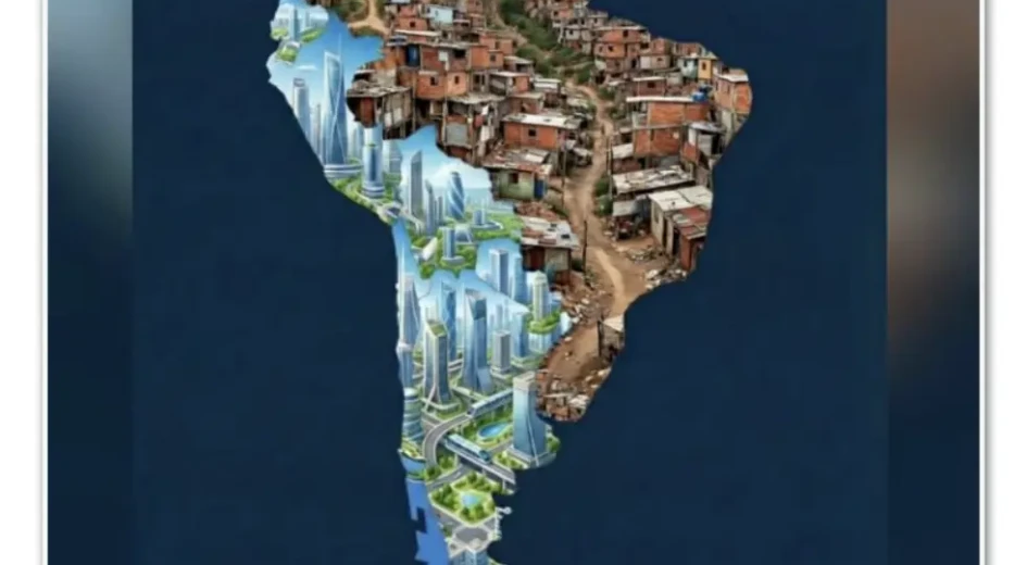Milei publica mapa do continente com Brasil coberto por imagens de favelas
