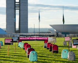 ONG coloca mochilas no gramado do Congresso para lembrar crianças mortas